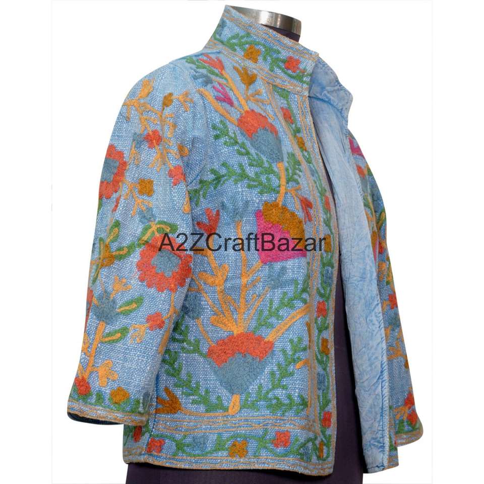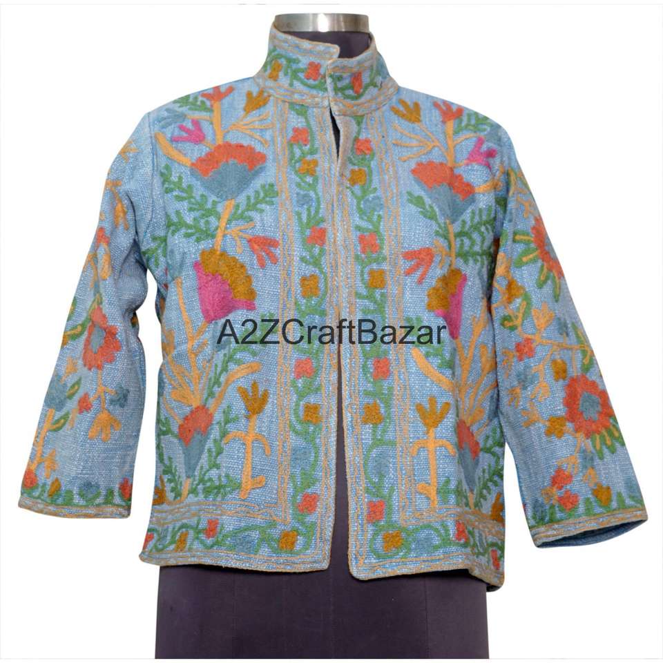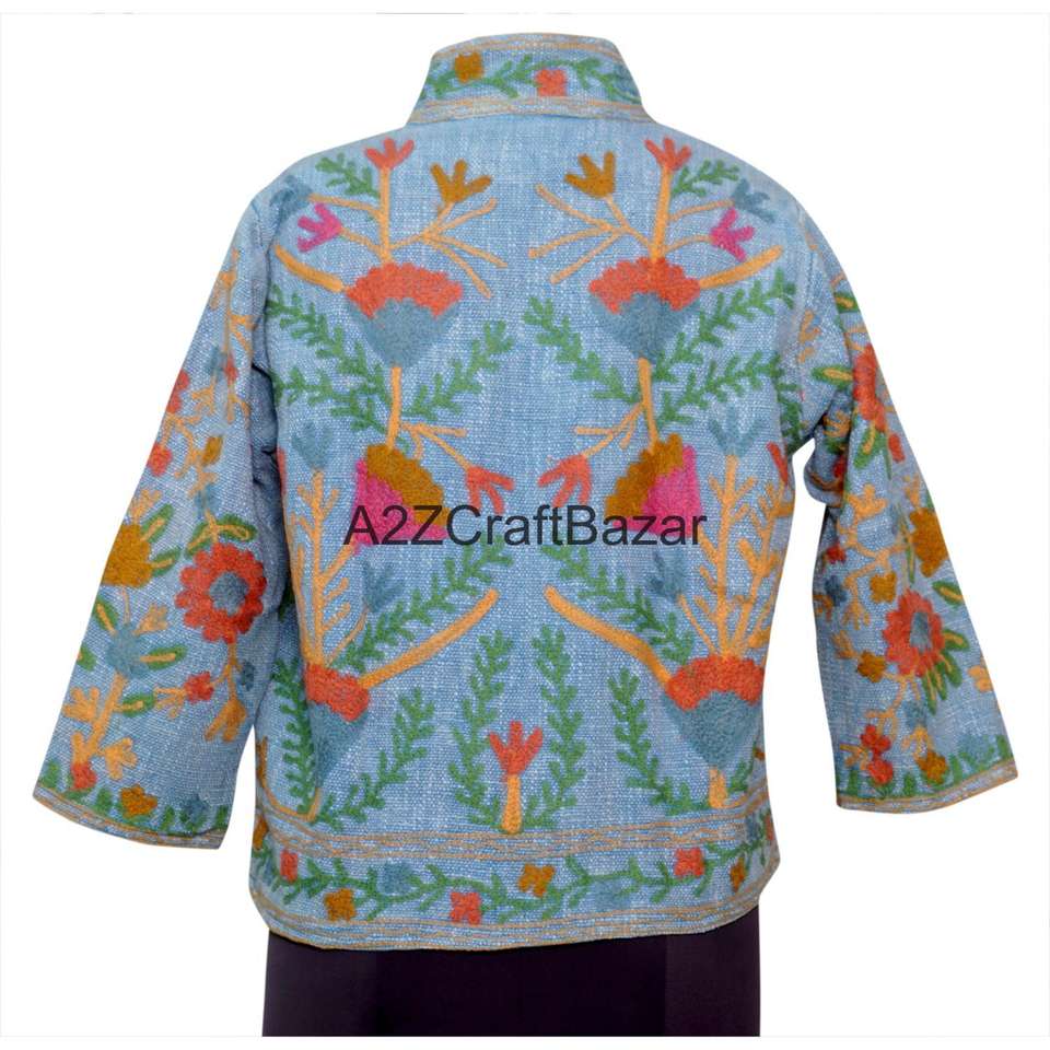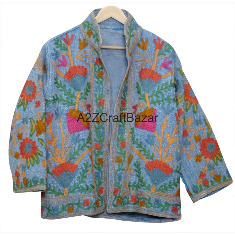 Blouson Bomber en Coton Multi-Saisons à Motif Floral Vintage, Broderie Suzani TNT, Design Dessiné à la Main, Écologique, Respirant, Séchage Rapide