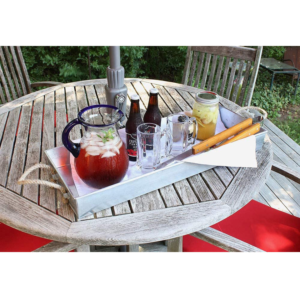 Plateau rectangulaire en acier galvanisé vintage avec poignée en corde Plateau de service décoré pour décor de table à manger de cuisine