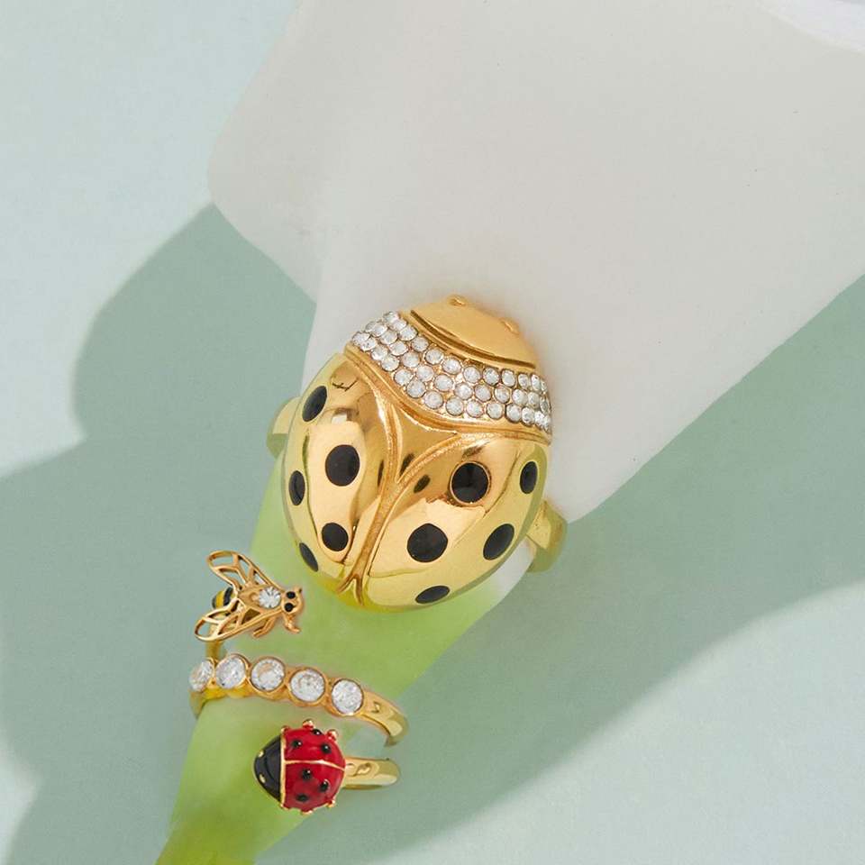 Bague vintage en pierres précieuses, zircon, coccinelle, plaqué or PVD, bijoux étanches en acier inoxydable, accessoires Y1479