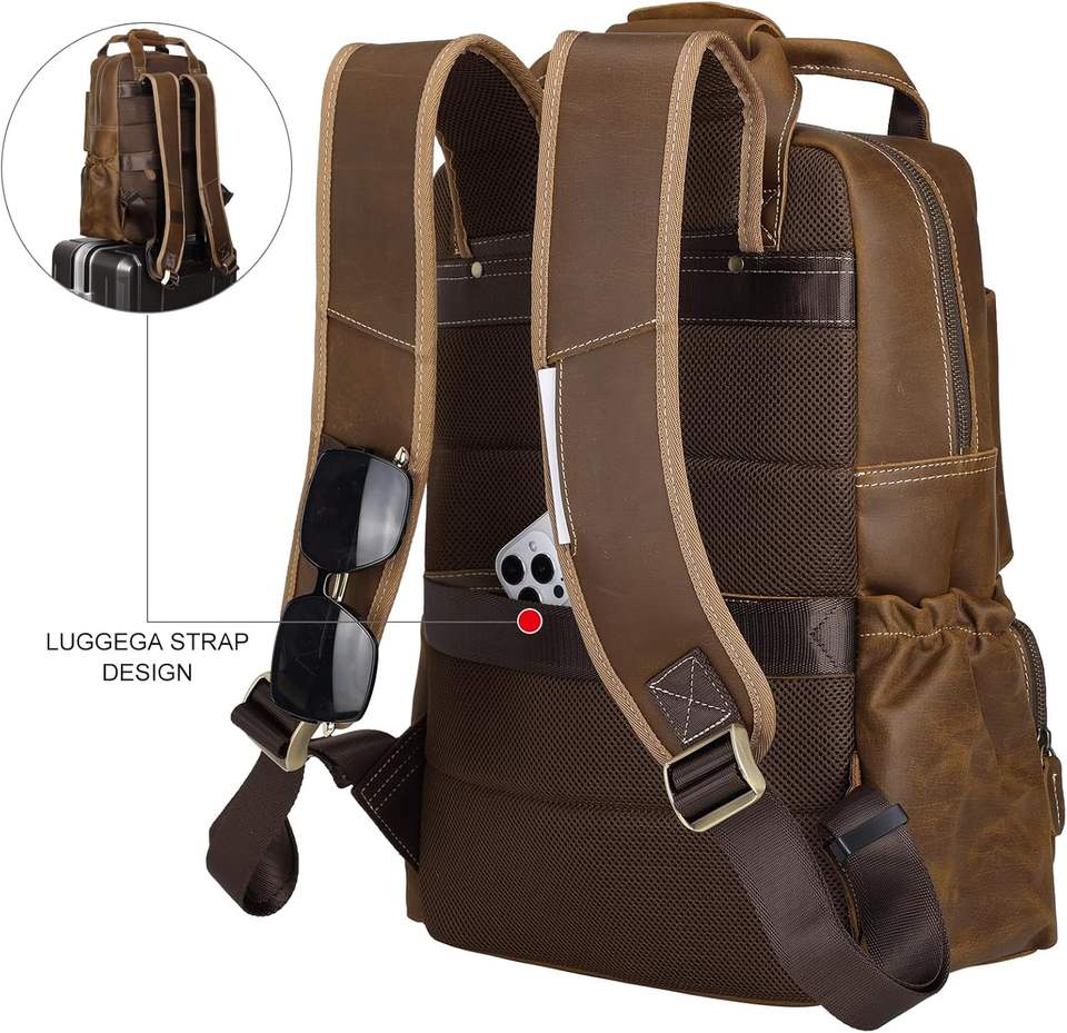 Sac à dos vintage en cuir véritable 17 pouces Sac pour ordinateur portable Sac à dos de voyage d'affaires Marron