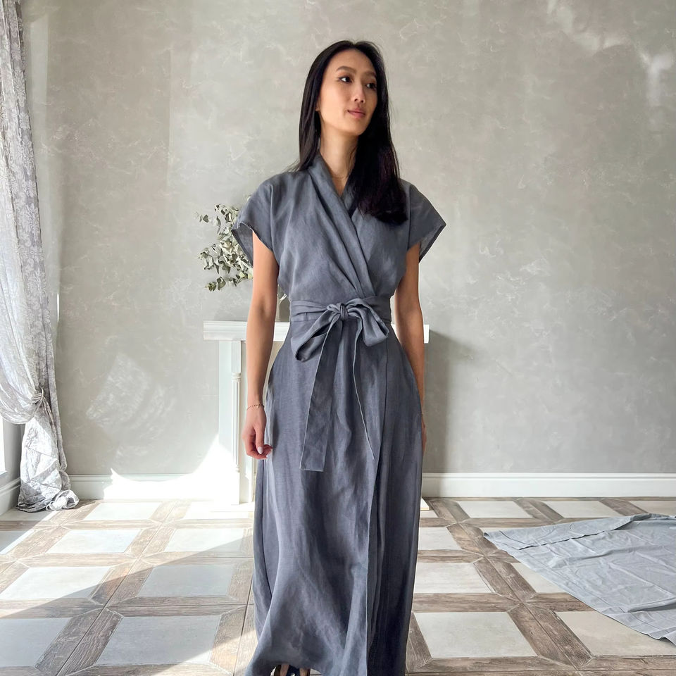 Product Name:Linen Wrap Kaftan Dress