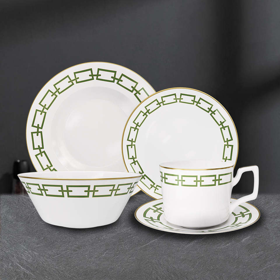 Service de vaisselle en céramique Excelsa Atena, lot de 6, 27x3 cm, vert, style design, durable, impression de décalcomanie personnalisable pour les hôtels