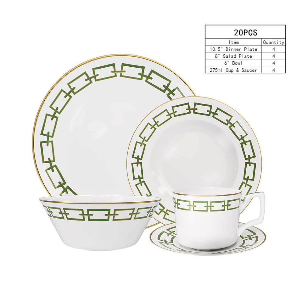 Ensemble d'assiettes à dîner vintage en porcelaine imprimée à motif de chaîne verte Design rétro assiettes de chargeur plats pour décoration de fête de mariage