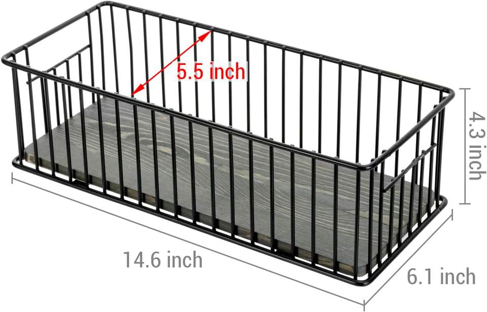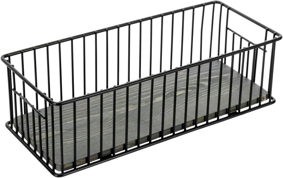 Panier de rangement de salle de bain moderne gris vintage Porte-papier hygiénique en fil métallique noir avec socle en bois massif gris vintage