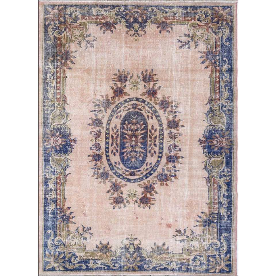Tapis en laine noué à la main vintage beige et marron à motif abstrait rectangulaire pour salon ou couloir Pae-2039