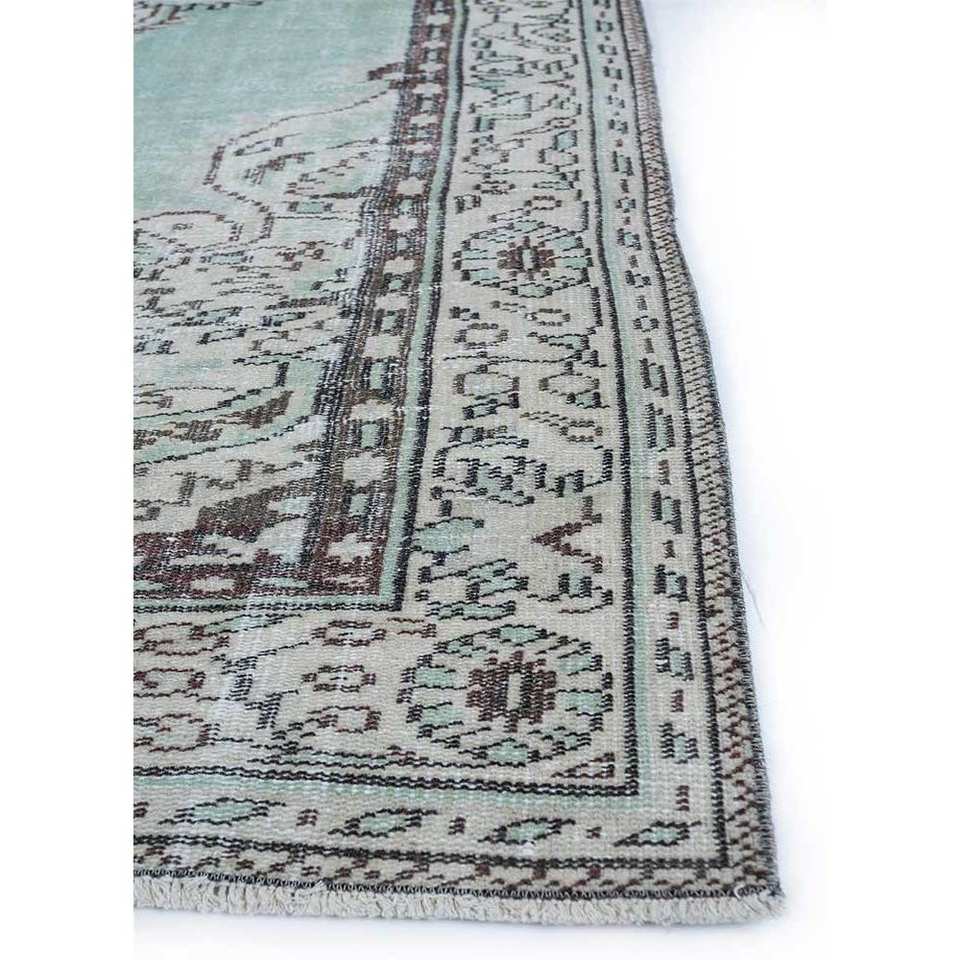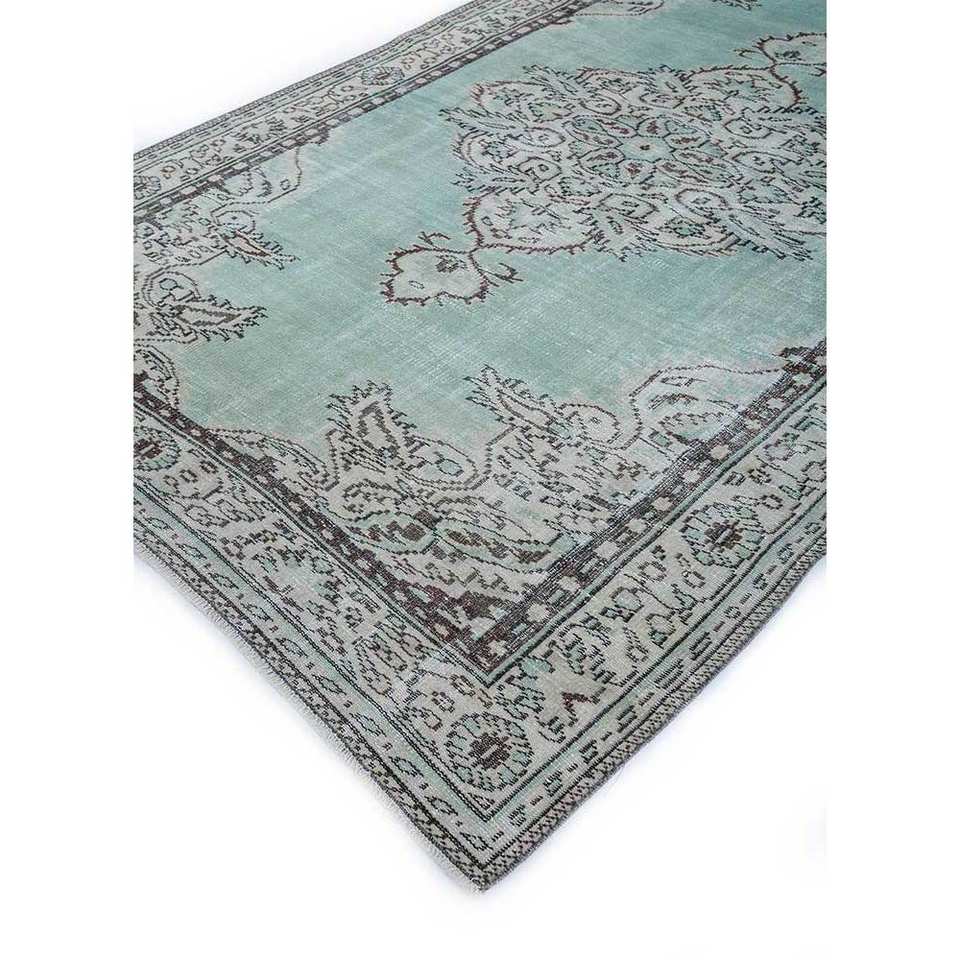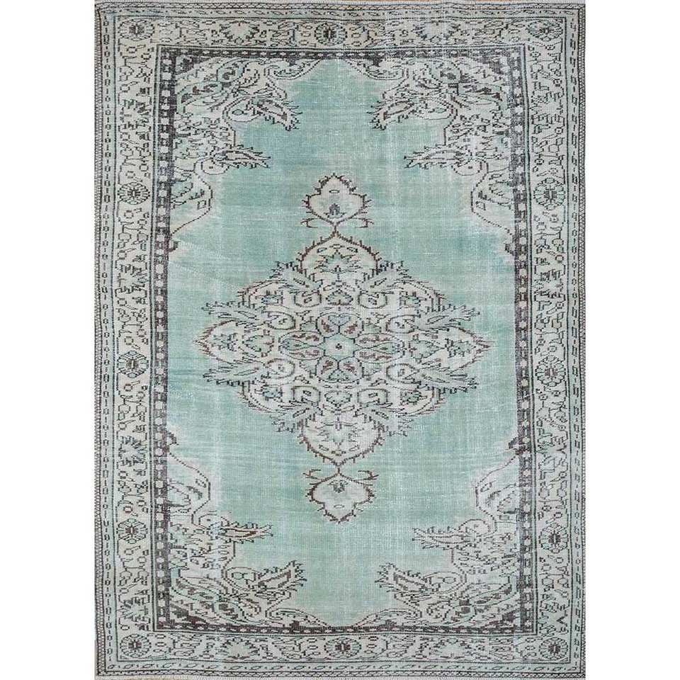 Tapis en laine noué à la main vintage vert, grand format, pour salon, motif rectangulaire abstrait, Pae-1578, pour usage domestique