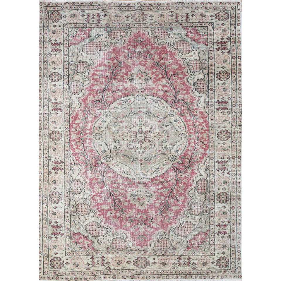 Tapis en laine noué à la main vintage, motif médaillon rouge-orange classique pour la maison, le salon, le couloir, design puzzle rectangulaire en peluche - Pae-2141