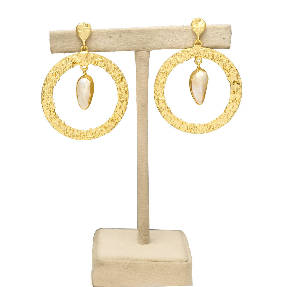 Vintage Handmade Brass Dangle Earrings with Round Hole Melting Pearl Fashion Statement Hanging Studs for Weddings