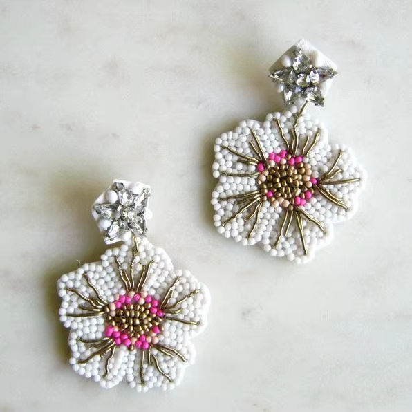 Vintage Handmade Cotton Seed Bead Earrings Stylish Unique Fashion Creative Design Lightweight Buddhist Style