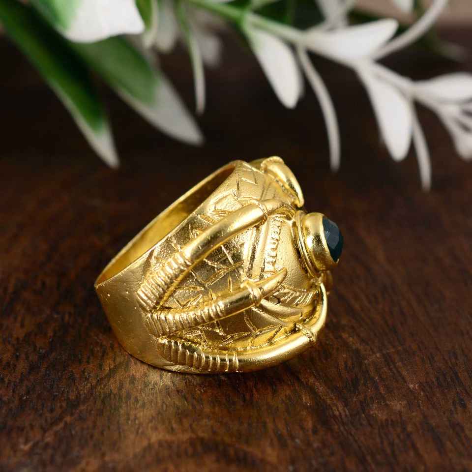 Vintage Women's Stainless Steel Finger Ring Creative Eagle Plumage Shape with Green Onyx Stone Inlay for Party