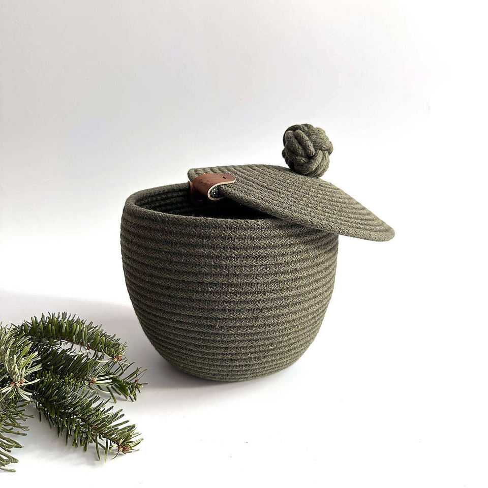 Panier de rangement tissé en corde de coton pur vintage avec couvercle panier de rangement rond au design attrayant pour accessoires de maison