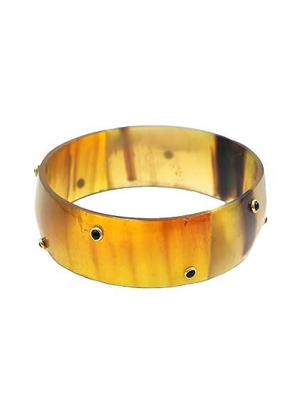 Vintage Indian Traditional Fashion Bracelet Sourced Buffalo Horn Bangle with Black Onyx Gemstone Handmade by Manufacturer