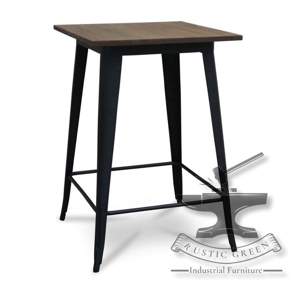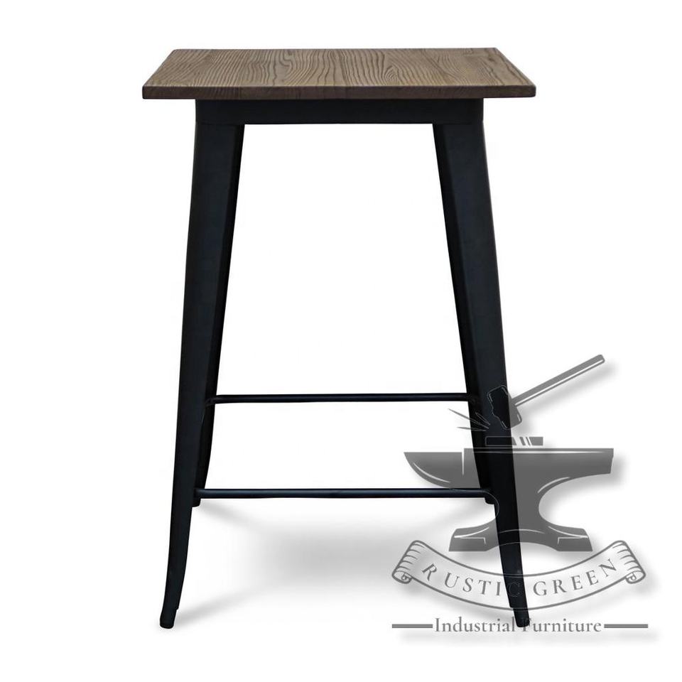 Grande Table de Bar Industrielle Vintage Plateau en Bois Foncé avec Construction Métallique pour Restaurant Salon Extérieur Hôtel Salle à Manger