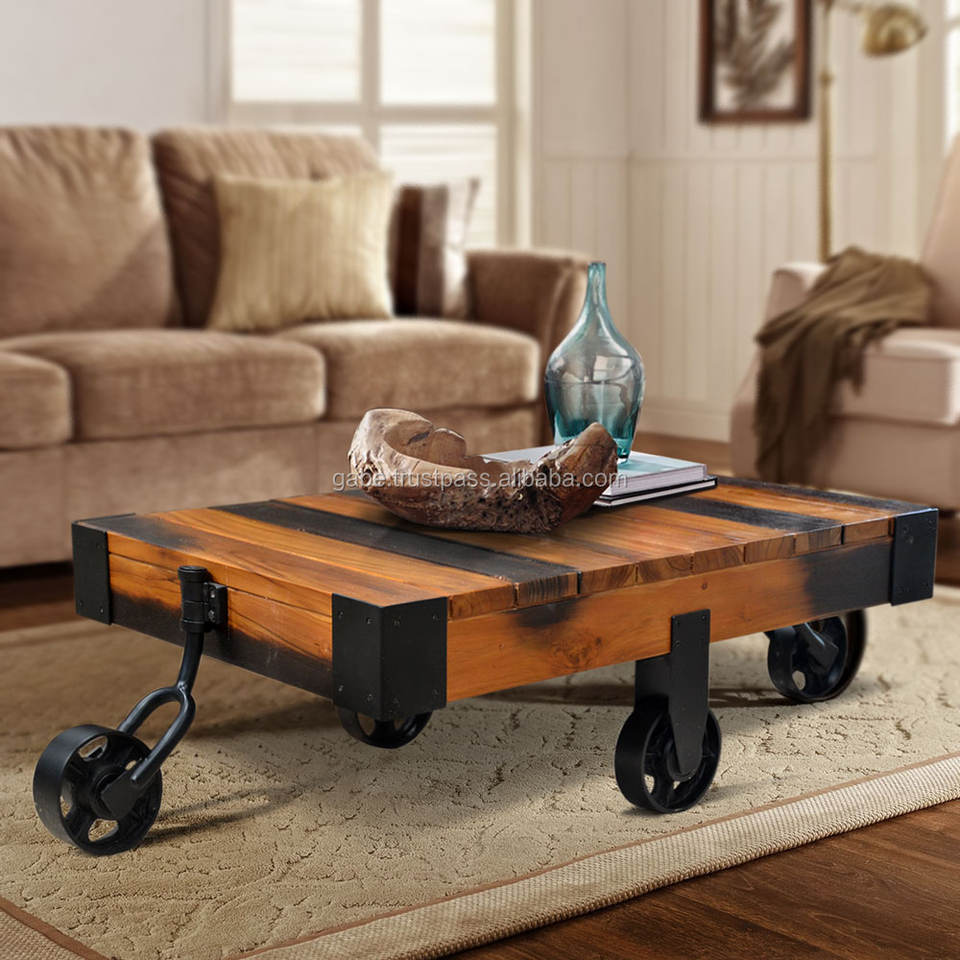 Vintage Industrial Teak Wood Furniture Trolley Home Decor Accessory