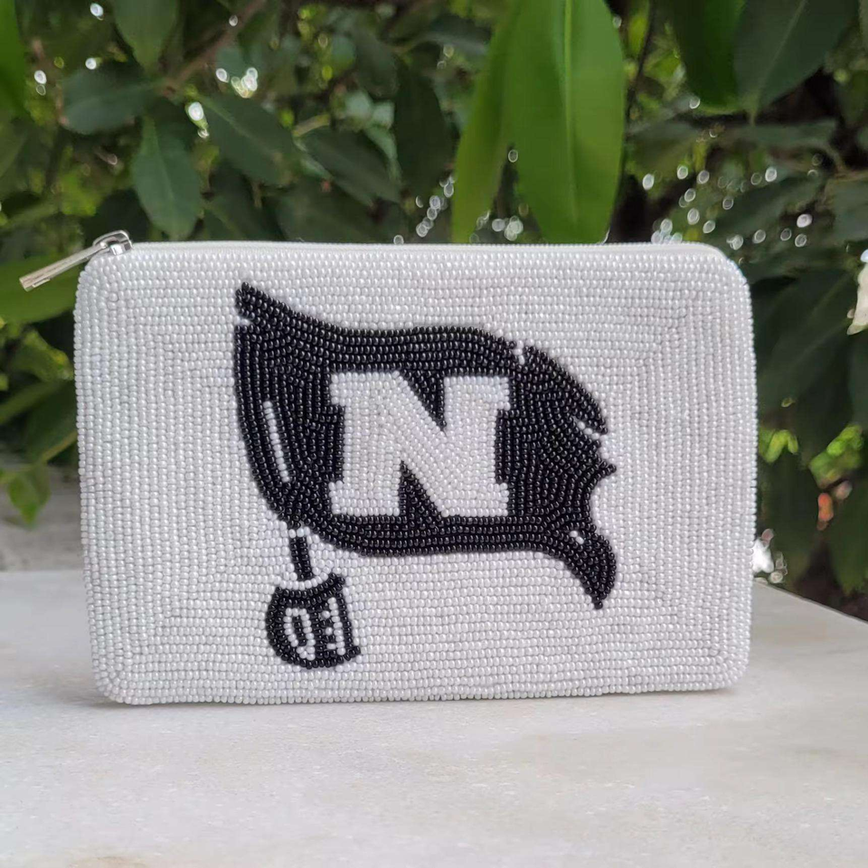 Porte-monnaie vintage MULTI CRAFT à motif de dessin animé perlé, brodé à la main, mini pochette zippée pour femme, imprimé en typographie