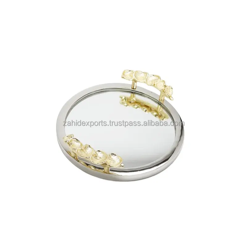Plateau en métal artisanal de luxe pour les acheteurs mondiaux, utilisation en cuisine et à l'hôtel, pour la présentation sur table, plateau texturé, spirale dorée ornée