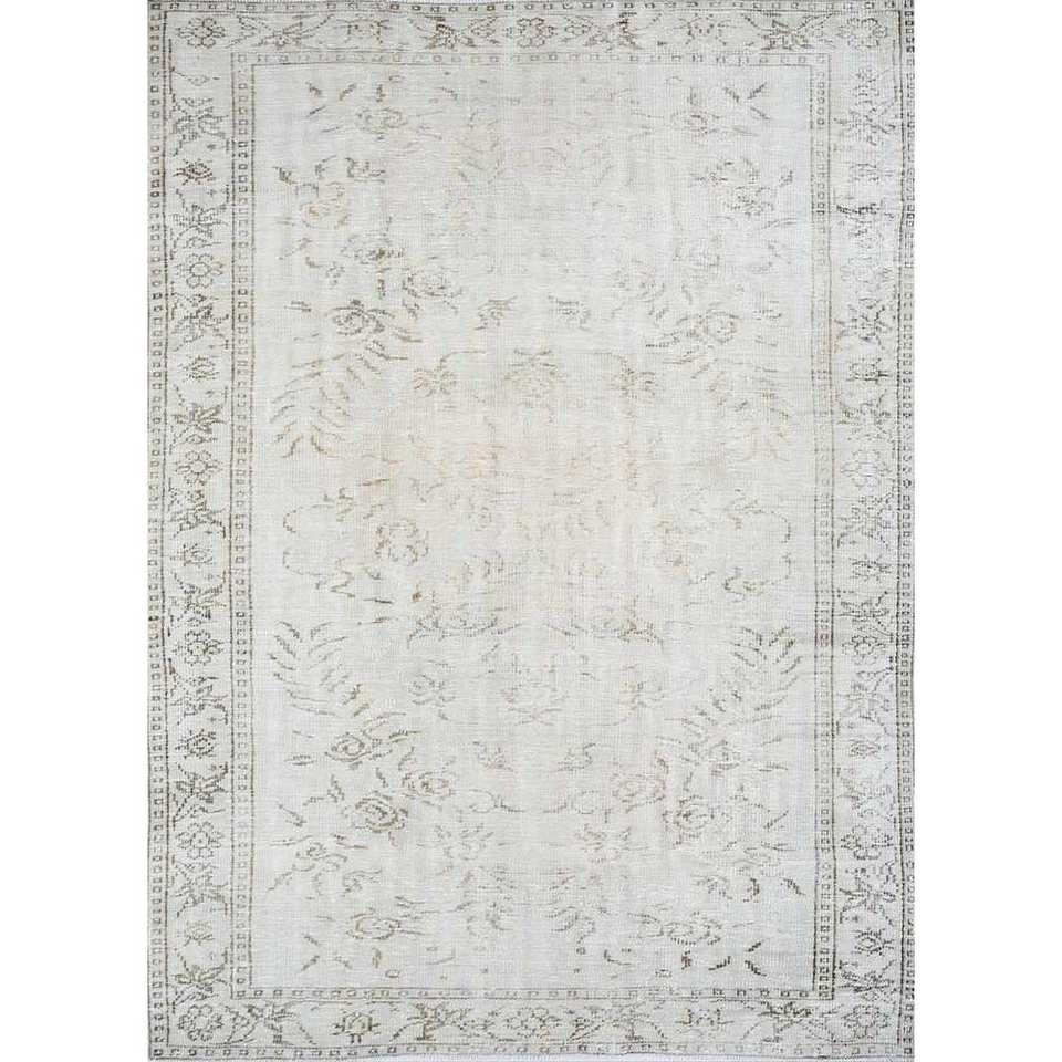 Tapis en laine noué à la main de style vintage ivoire, motif floral Pae-1507, pour usage domestique