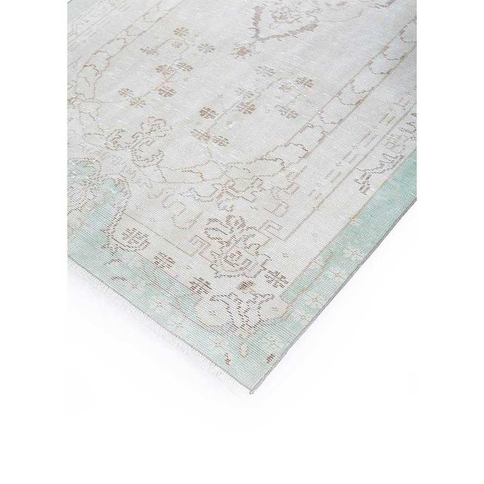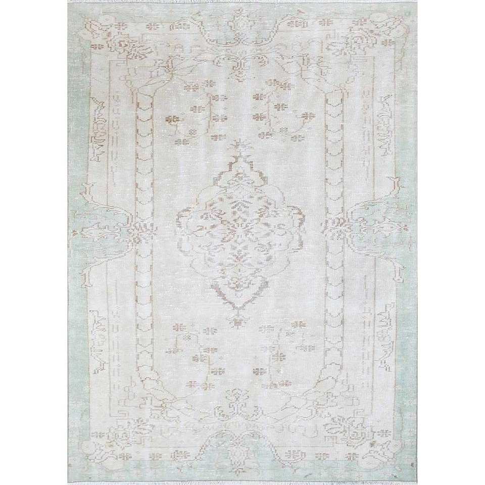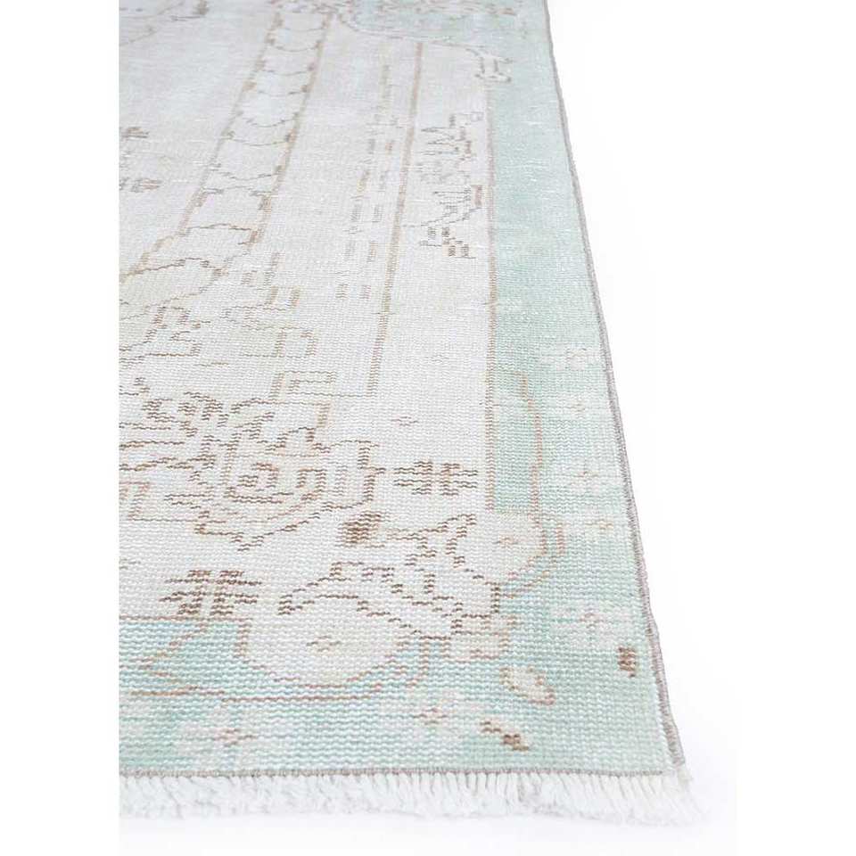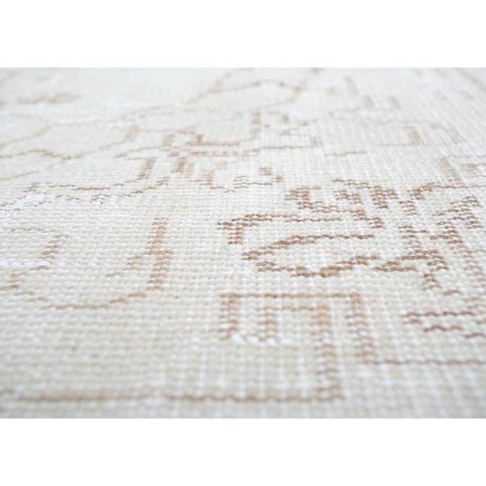 Tapis en laine noué à la main vintage ivoire Pae-610 pour salon, couloir, avec motif rectangulaire abstrait à médaillon pour la décoration intérieure