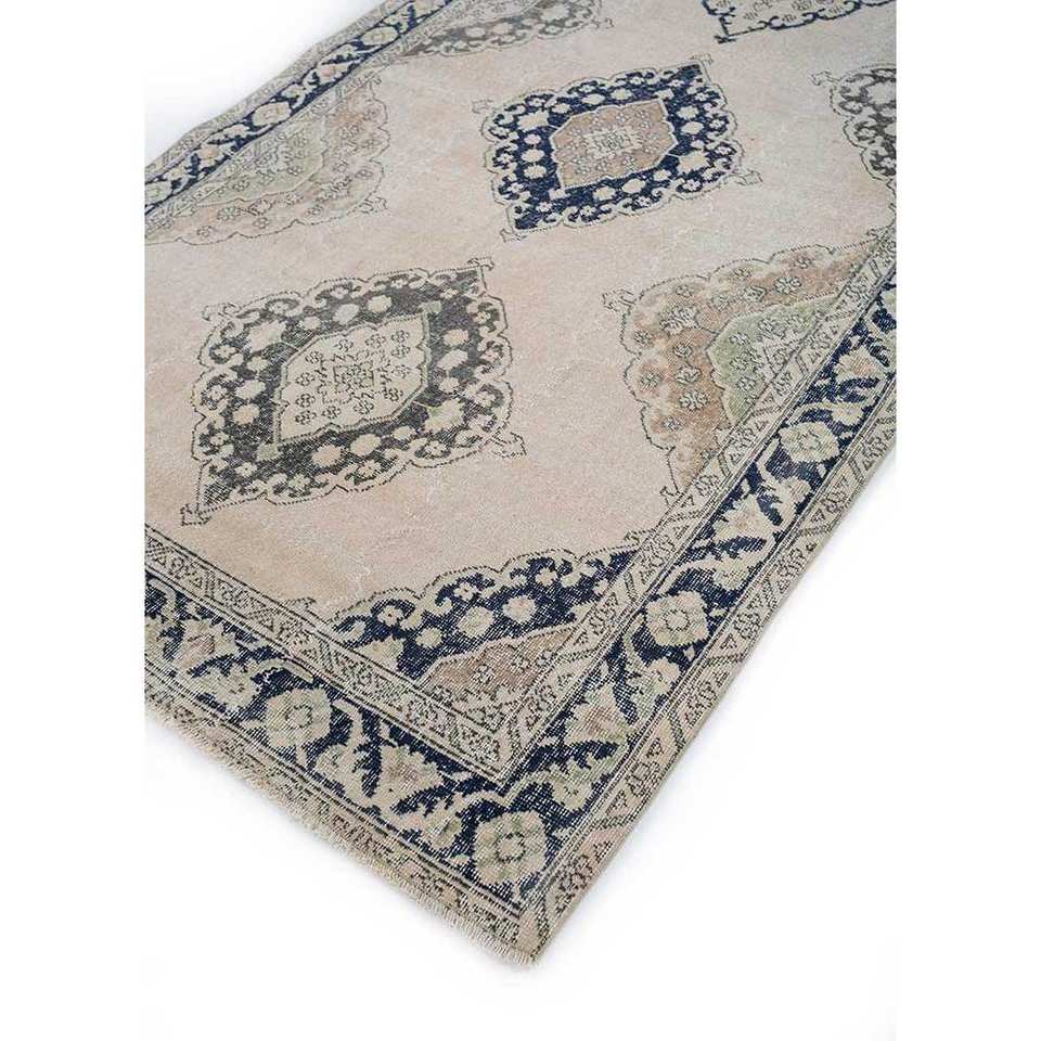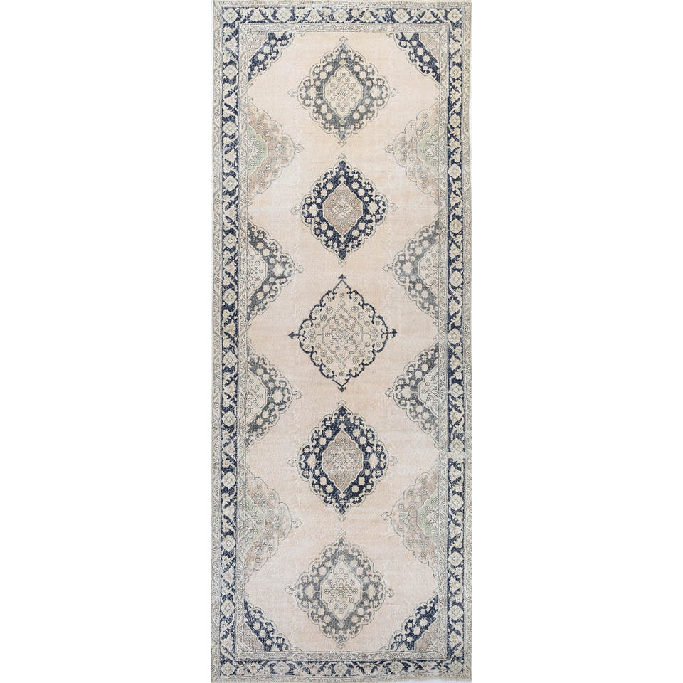 Tapis vintage en laine ivoire noué à la main Pae-804, motif médaillon, pour couloir, rectangulaire, technique 3D, tapis de chambre, Jaipur Rugs US