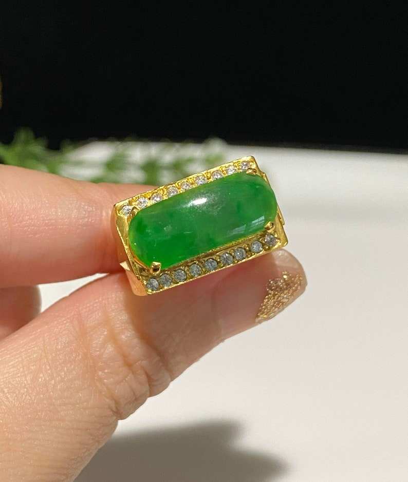 Keyword:Vintage Jadeite And White Topaz Ring In 925 Sterling Silver