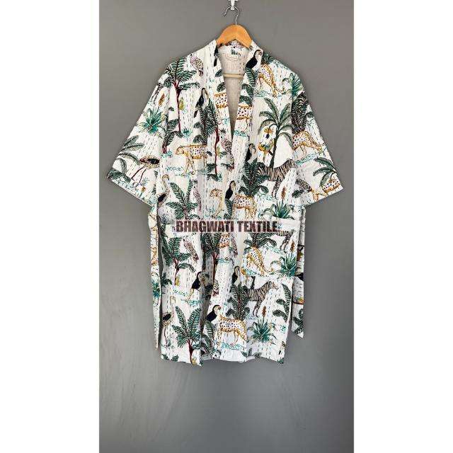 Veste Kantha en coton indien fait à la main de style bohème vintage Robe Kantha ethnique pour femmes Peignoir imprimé Jungle pour vêtements de nuit d'été