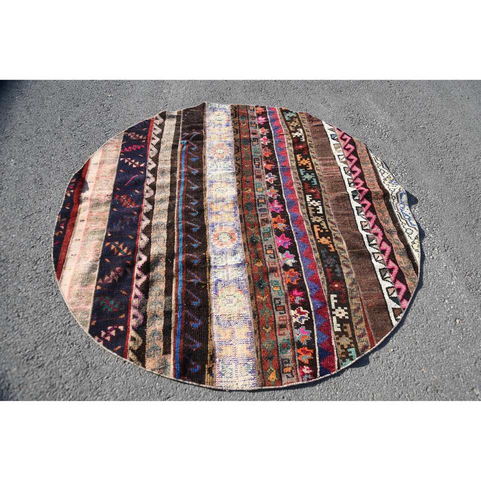 Tapis de jute en laine marron Kilim Vintage 5.8x5.8 pieds Patchwork fait à la main motif rectangle abstrait pour entrée lit chambre couloir Latex