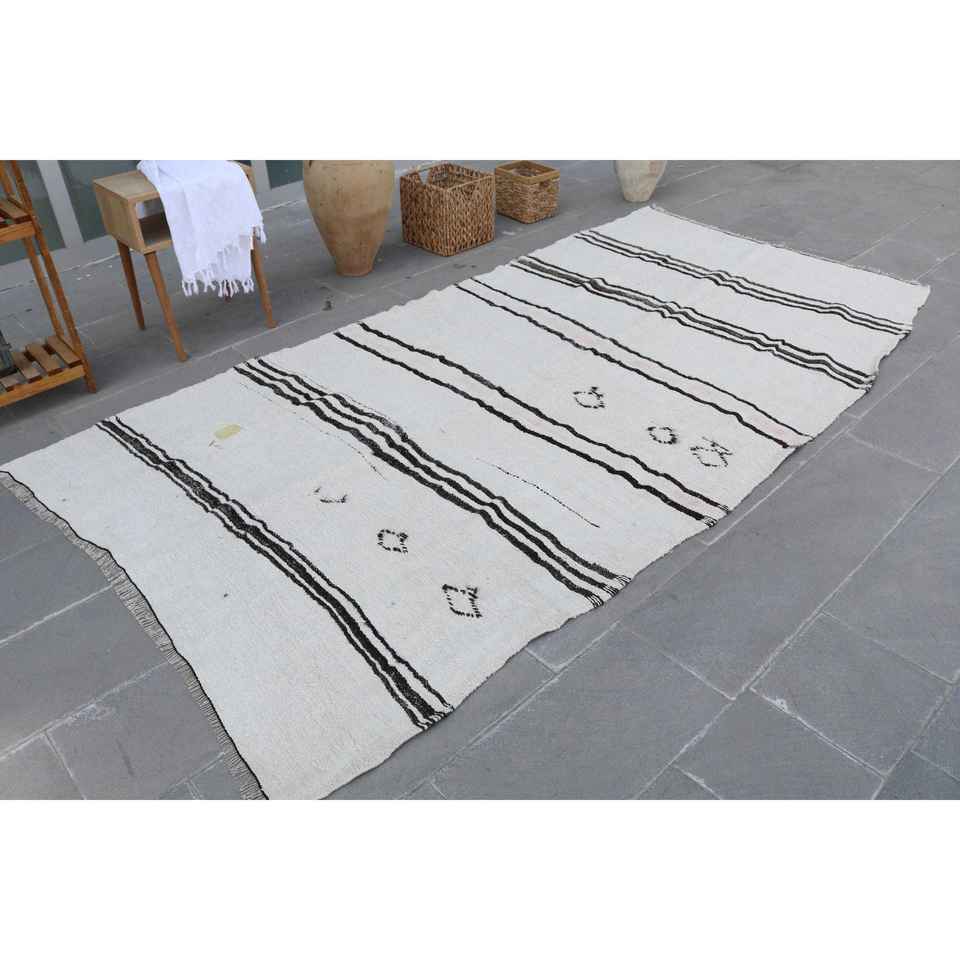 Grand tapis vintage 4,9x9,8 pi (148x299 cm), tapis turc en laine blanche à motifs floraux