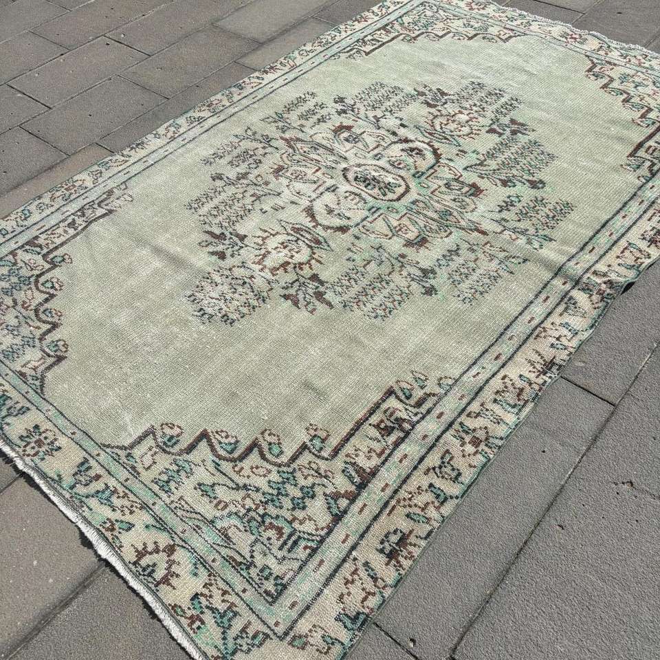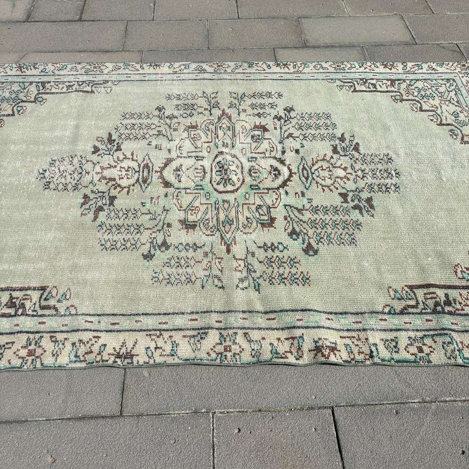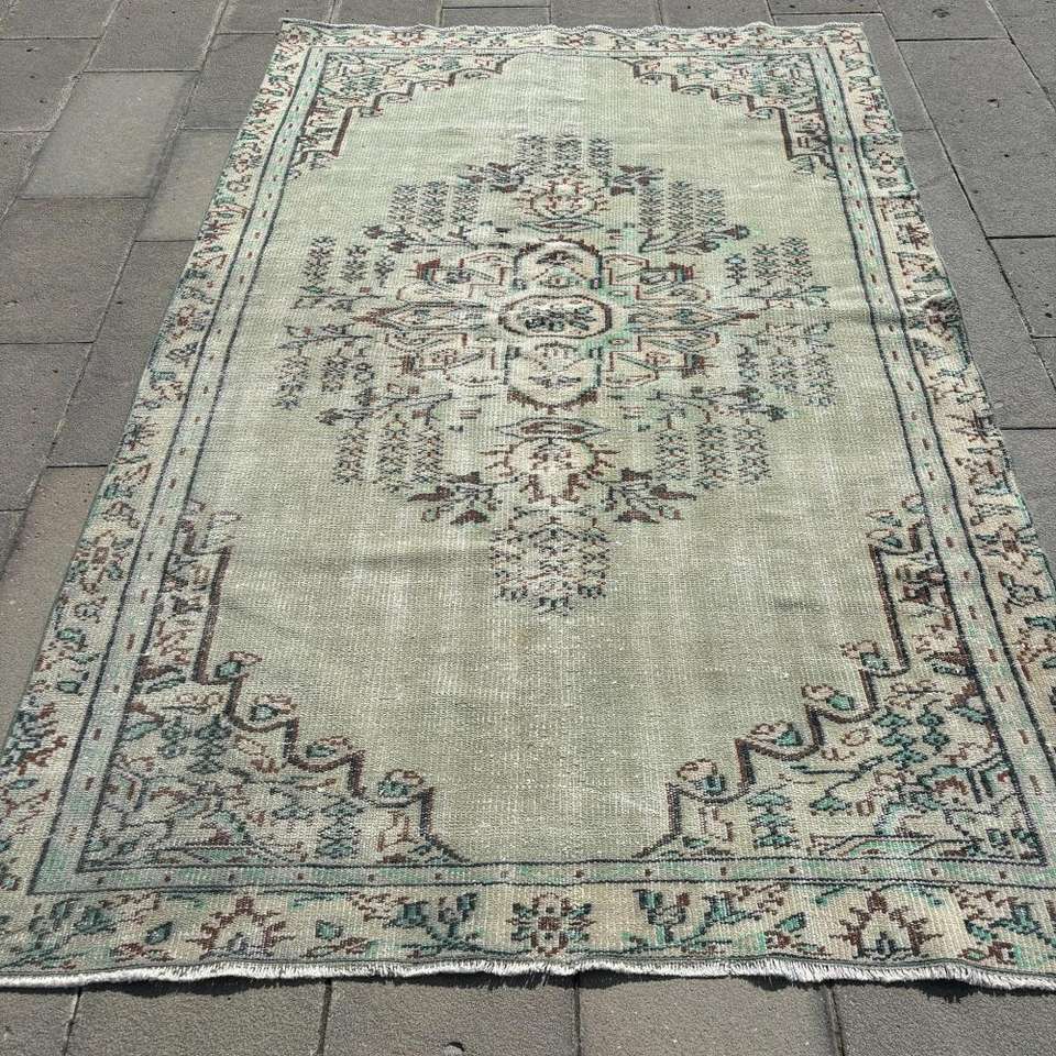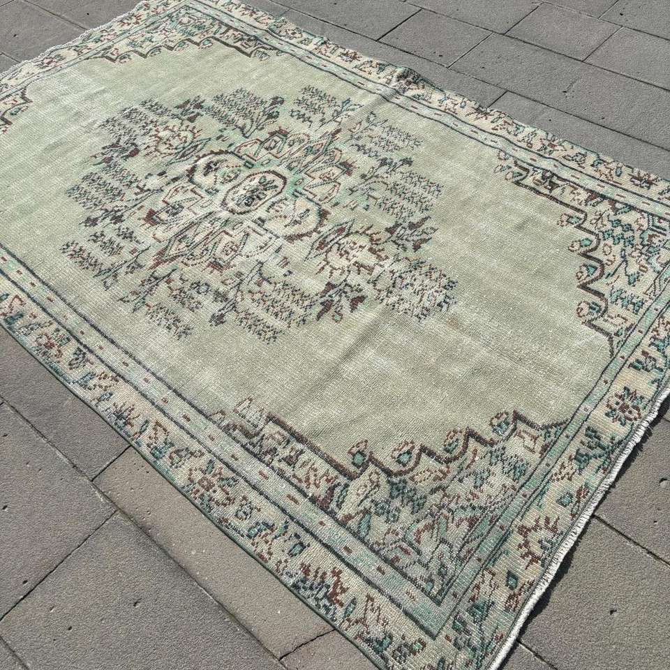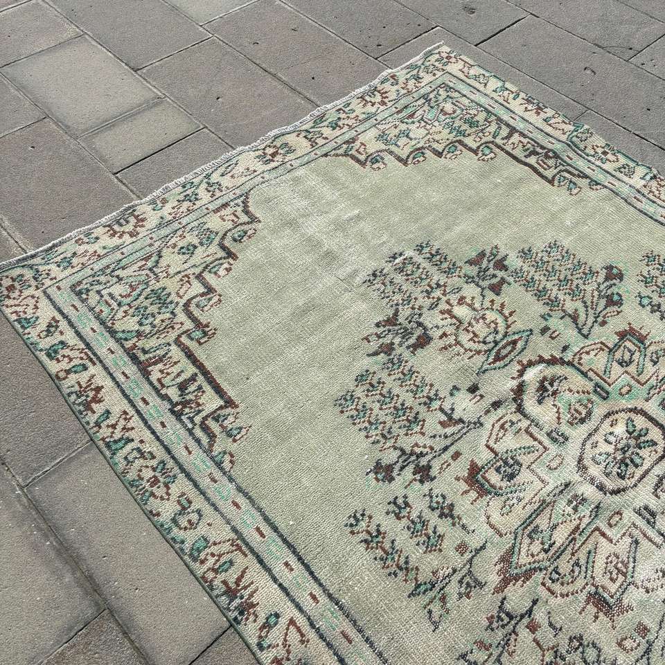 Grand tapis vintage, tapis turc de 5,2 x 7,9 pieds, tapis en laine persan vert