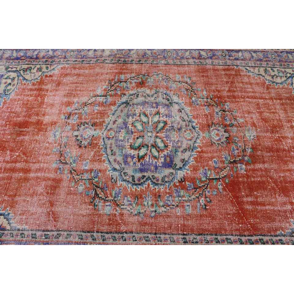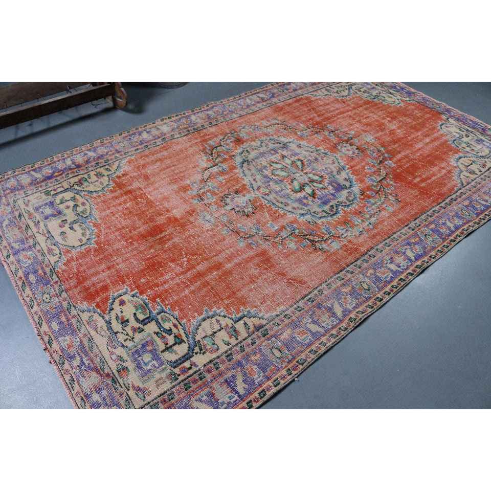 Grand tapis vintage 5,5x9,3 pieds, tapis turc en laine rayé rouge