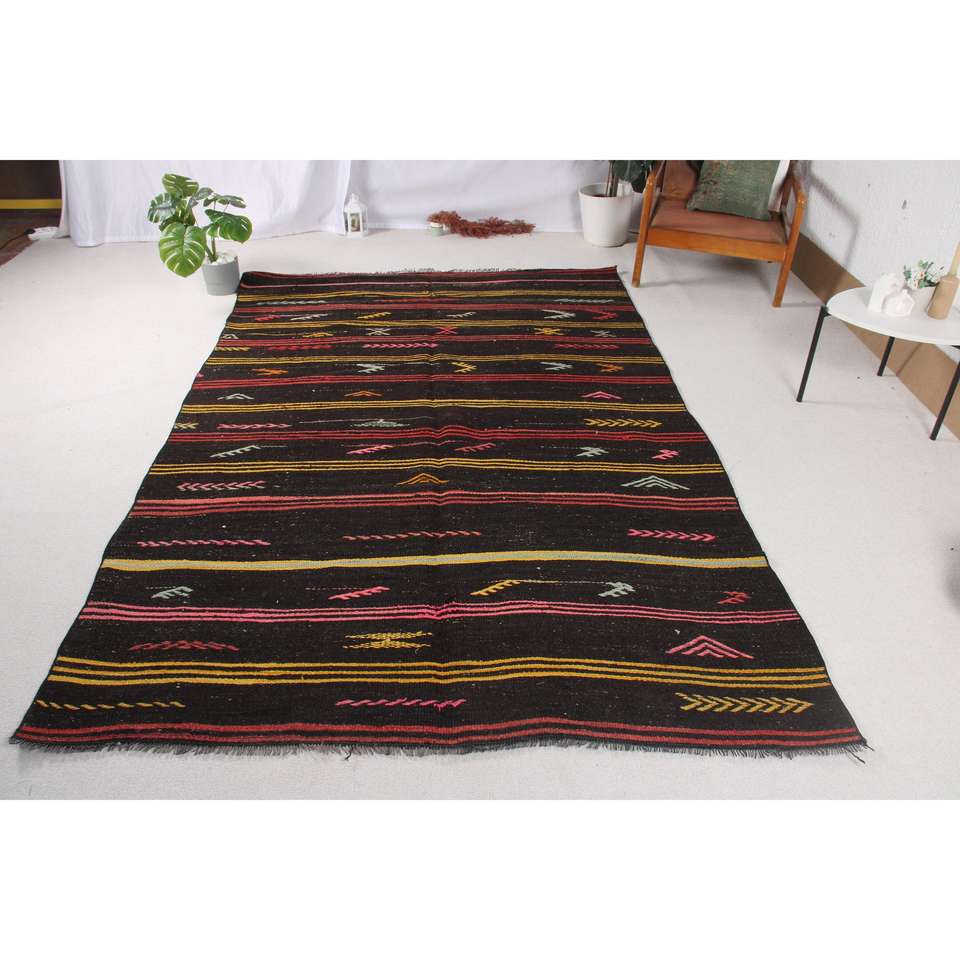 Grand tapis vintage 5,6x8,4 pi (170x257 cm), tapis persan turc Kilim noir