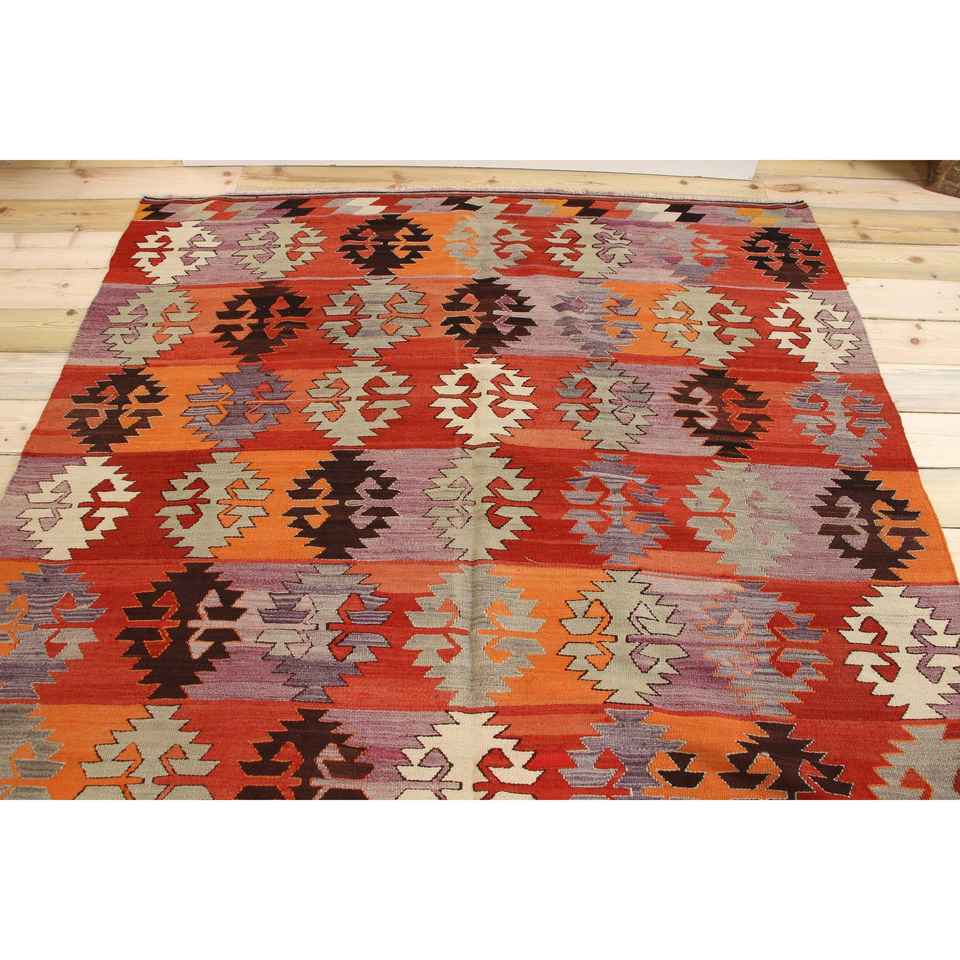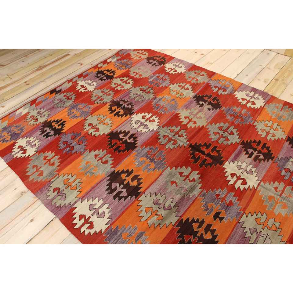 Grand tapis vintage 5,9x10,6 pieds, tapis en laine rouge et violet à motifs floraux