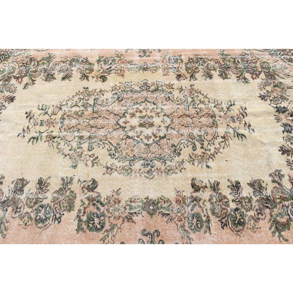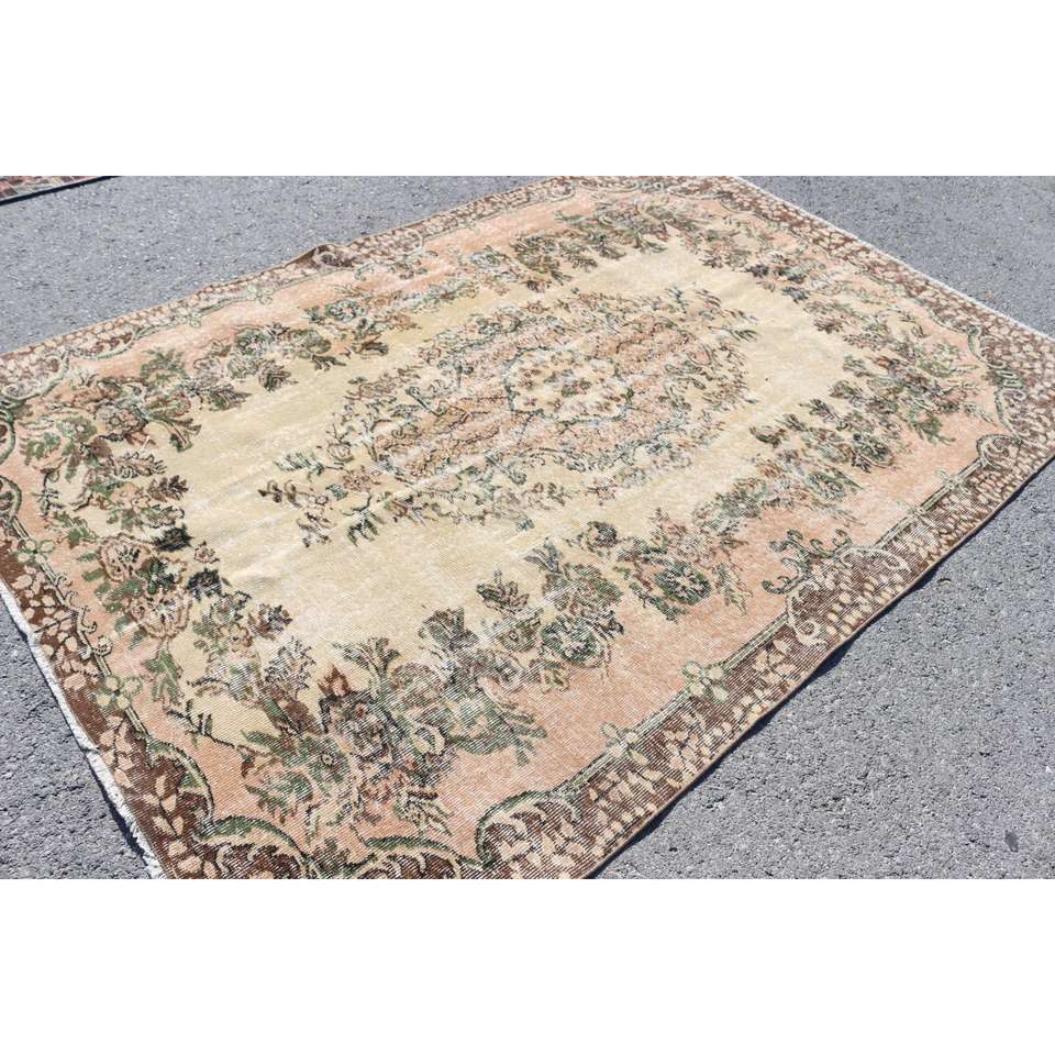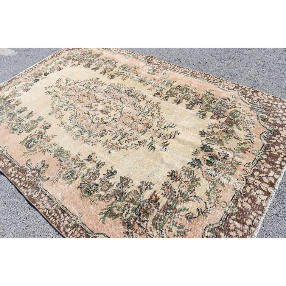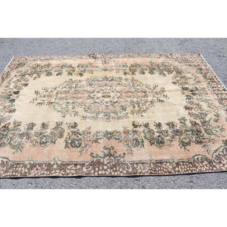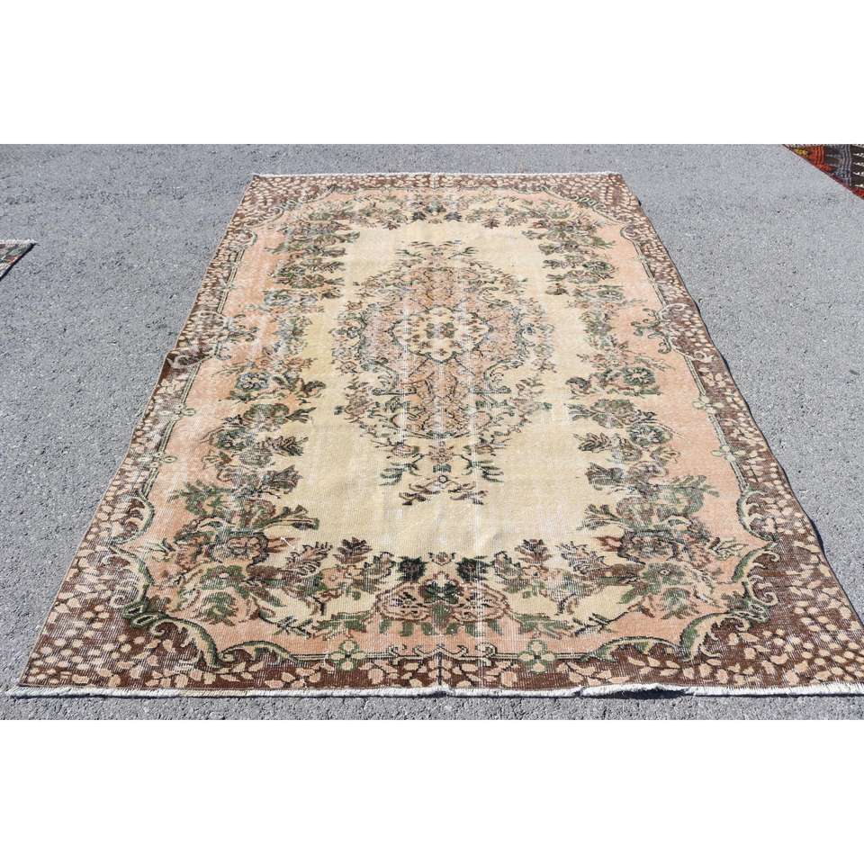 Grand tapis vintage 5,9x8,9 pieds, tapis turc en laine brun à bordures