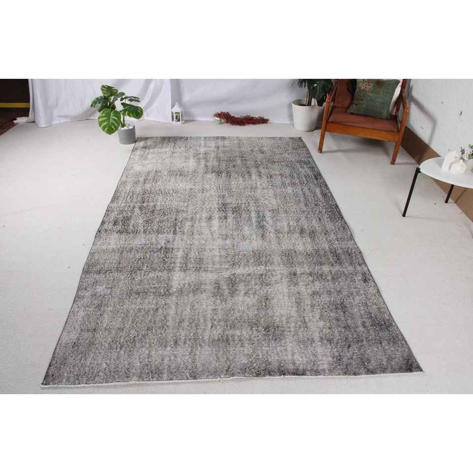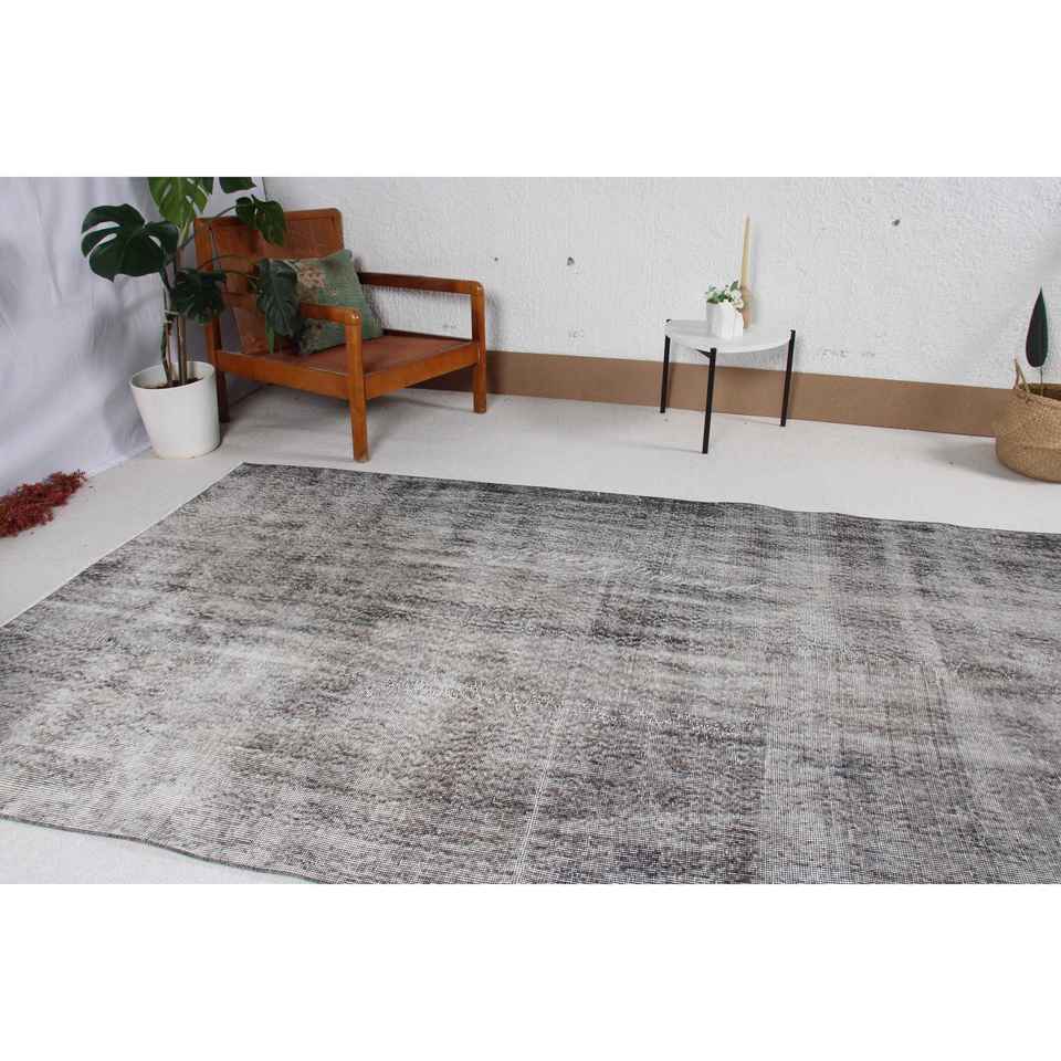 Grand tapis vintage, tapis turc 5x8,8 pieds, tapis en laine grise
