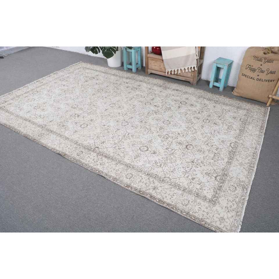 Grand tapis vintage 6,2x9,9 pi (188x301 cm), tapis turc blanc à bordures