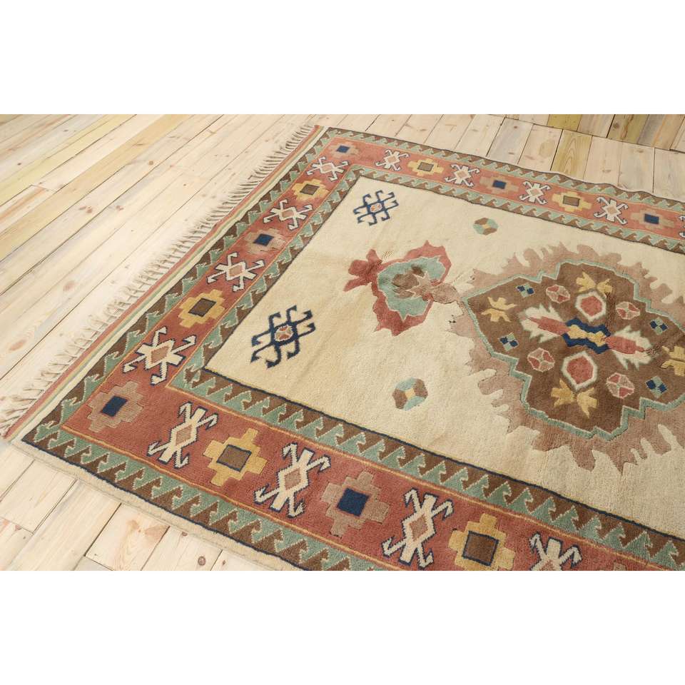 Grand tapis vintage 6,4x8,9 pi (195x272 cm), tapis turc brun à pois