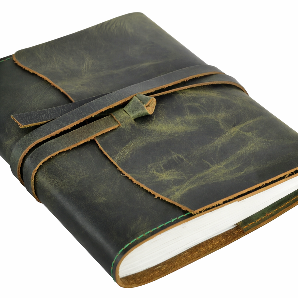 Carnet de notes vintage en cuir fait main, reliure cousue, papier de haute qualité sans acide, bords festonnés, option cadeau personnalisable