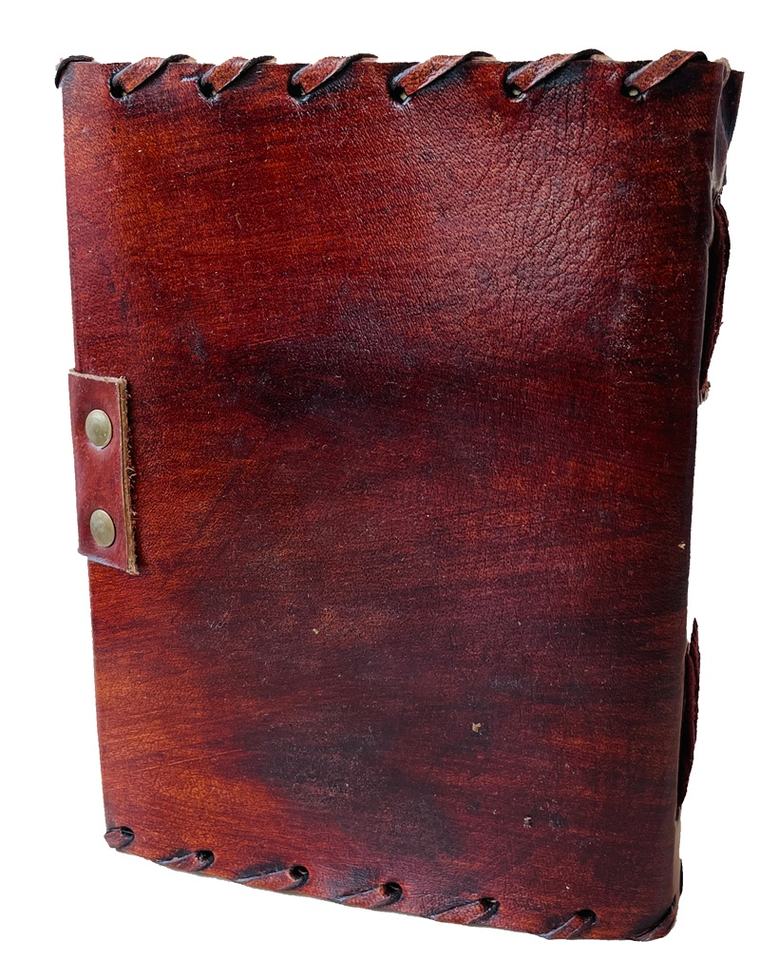 Journal en cuir véritable gaufré à la main avec triple lune cloutée en pierre Livre des sorts d'ombres Deckle Edge A5 Papers Notebook Blank Diary