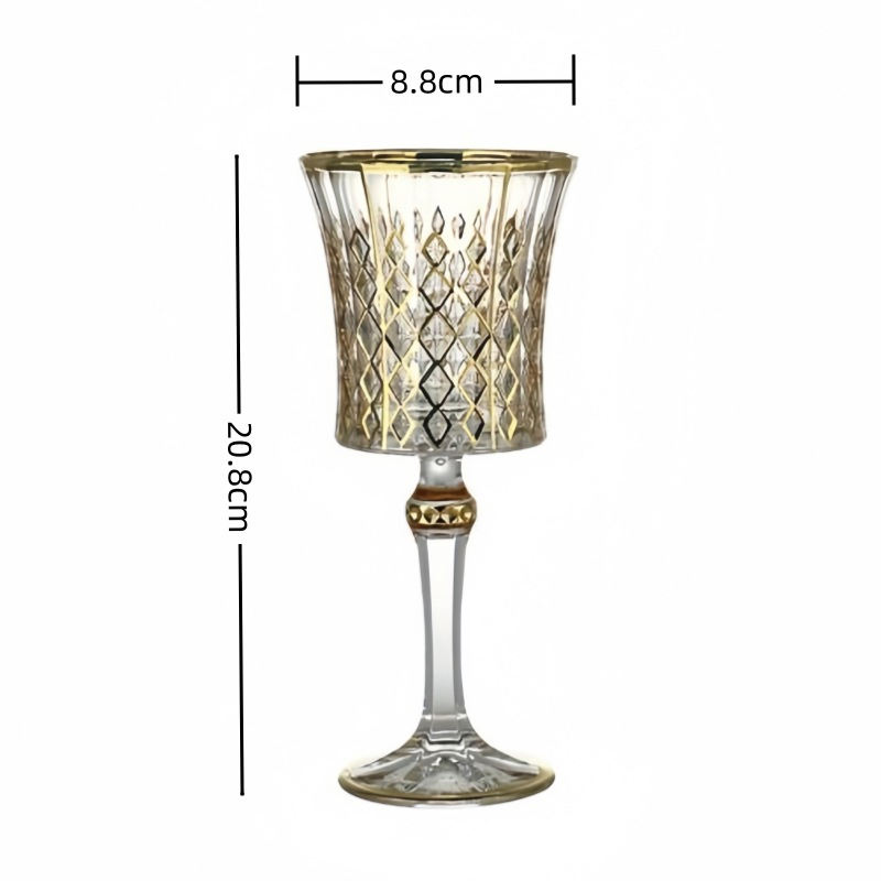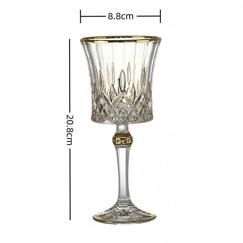Verre à vin vintage de luxe en cristal avec bordure dorée 10oz/270ml, fait main, écologique, design classique, sculpté, grande capacité, Louis