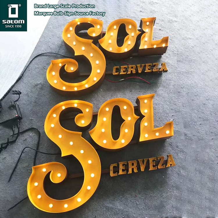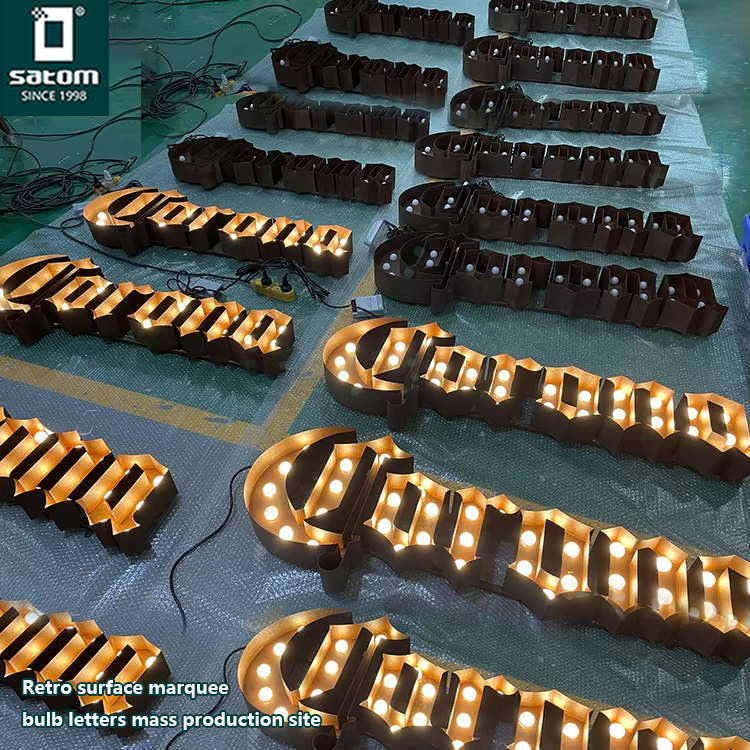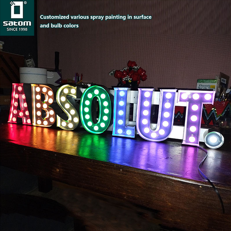 Vintage Marquee lettre lumière signe ampoule néon Logo signe 3d signalisation traitement de surface différent enseigne lumineuse personnalisé