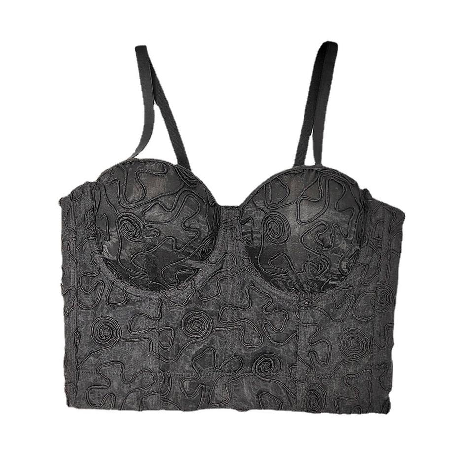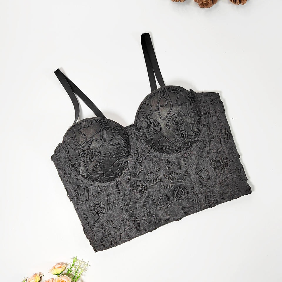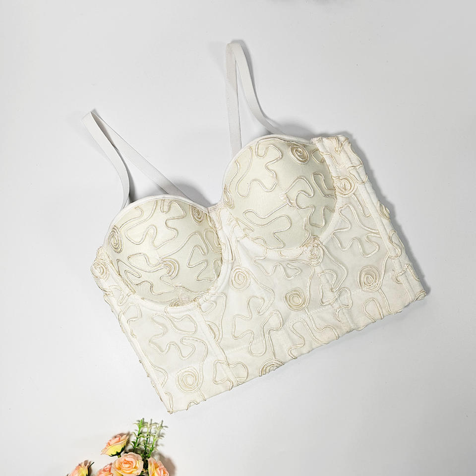 Labyrinthe vintage courbe broderie arête de poisson fronde coupe ajustée dos nu élégant façonnage haut avec anneau en acier tube haut