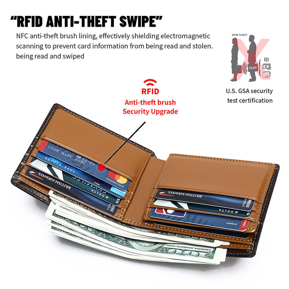 Portefeuille vintage pour homme, court, anti-RFID, fermeture ouverte, étanche, avec 11 emplacements pour cartes de crédit, en cuir véritable pour homme