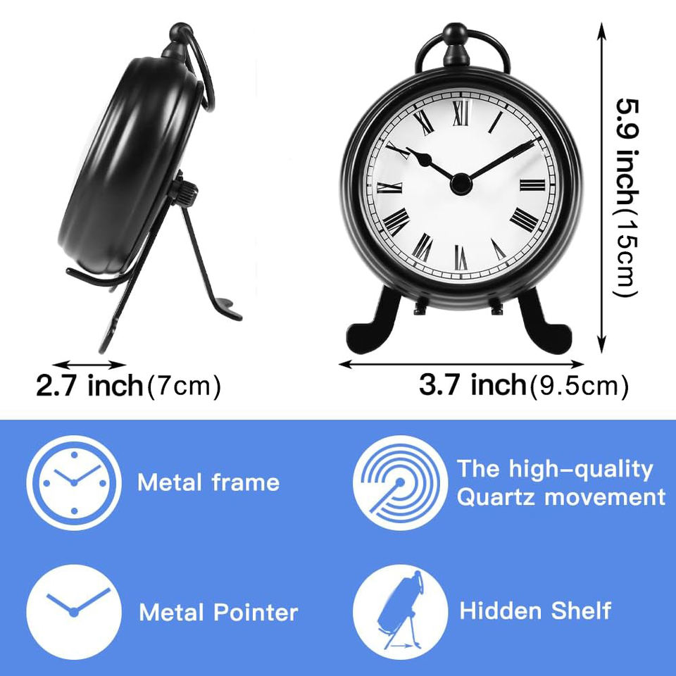 Horloge de bureau vintage en métal, petite horloge analogique de table, mouvement à quartz silencieux pour la décoration de la maison, du bureau ou de la chambre