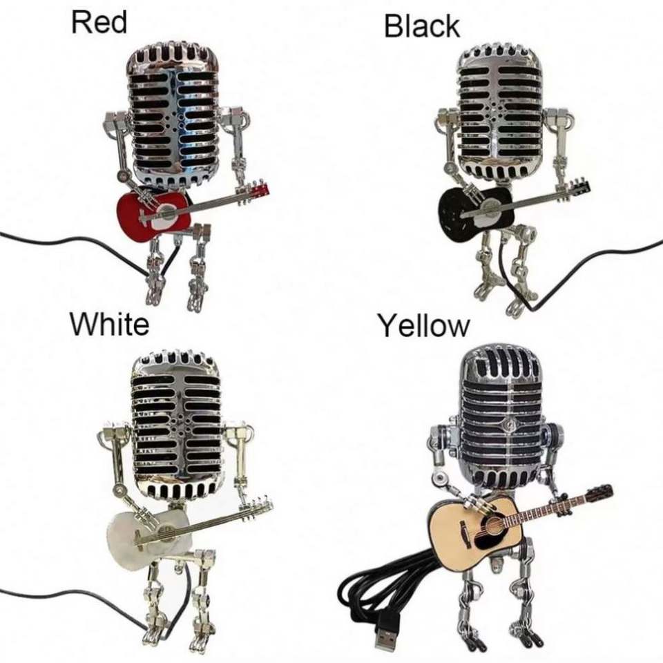 Lampe de bureau LED vintage en alliage d'aluminium, motif robot micro et guitare, style Art Déco, miniatures artisanales, éclairage pour bureau, maison, cuisine