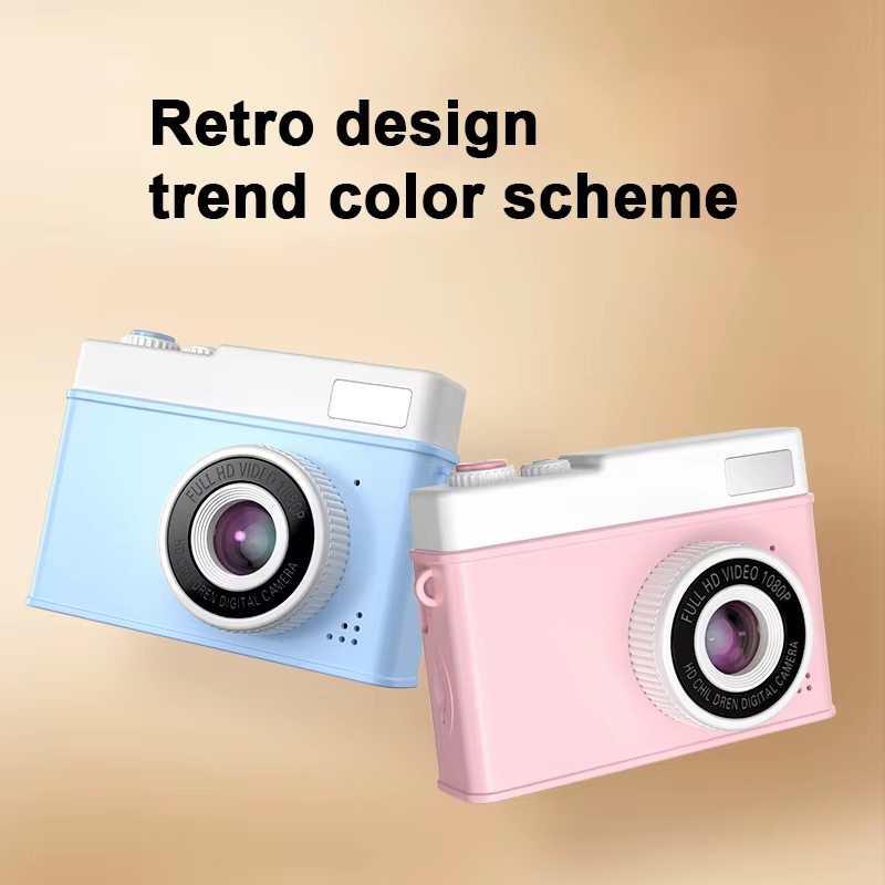 Mini appareil photo numérique vintage pour enfants, écran IPS 2,0 pouces, double objectif, batterie 400 mAh, rose, jouet de dessin animé, photographie en un clic, Instax Low