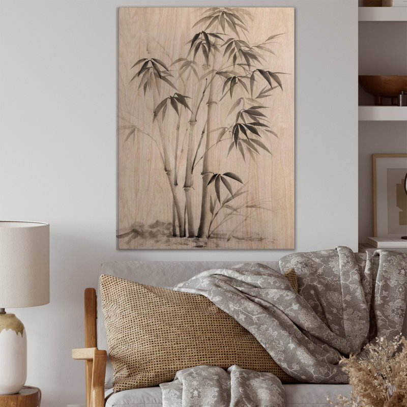 Vintage Monochrome Bamboo II Wood Wall Sign Elegant Painting Print
