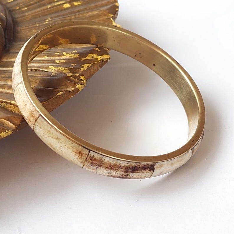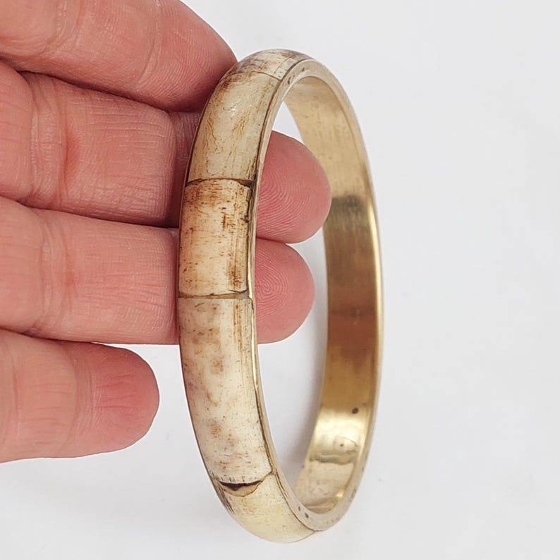 Bracelets vintage en laiton avec incrustations de os naturel, bijoux ethniques tribaux faits à la main pour femmes