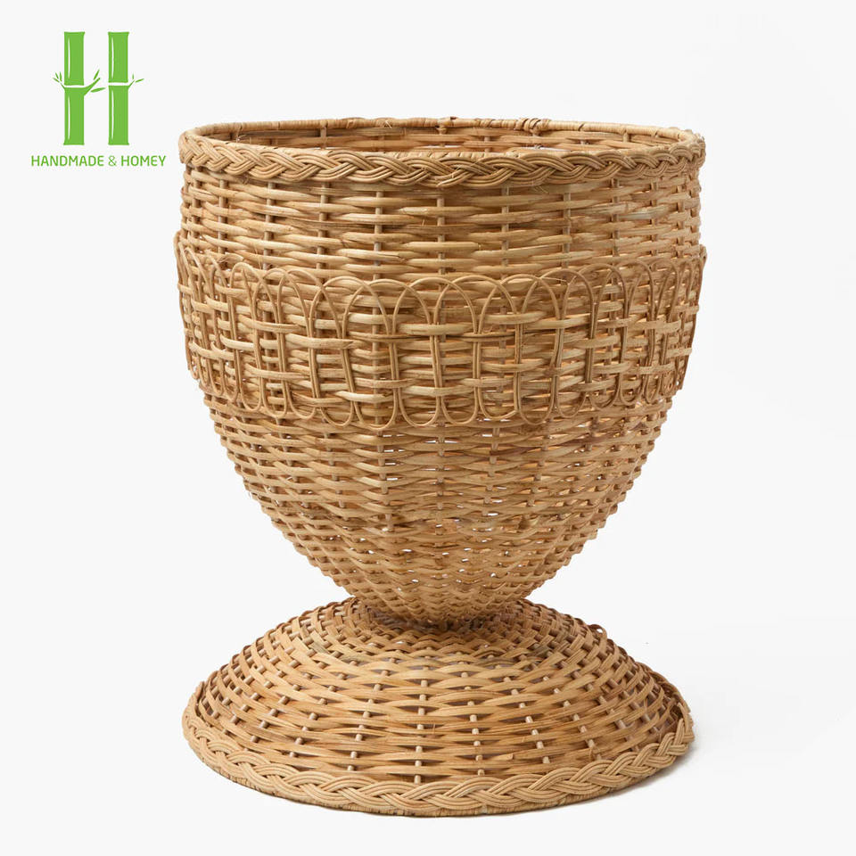 Vase en rotin naturel vintage décor en osier tissé à la main Vase à fleurs cannelé sablier en rotin Vase décoratif pour la décoration de mariage à la maison