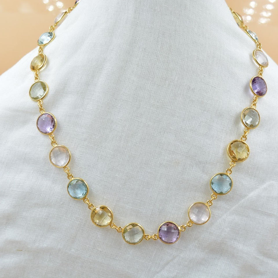 Collier en argent sterling de forme ronde en pierres précieuses multiples naturelles vintage, bijoux avec pendentif en pierres précieuses multiples en gros
