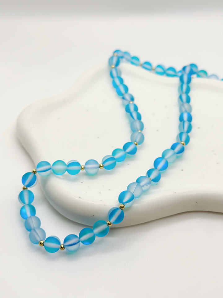 Vintage New Stainless Steel Necklace Stylish Gold Plated Link Trendy Simple Bead Sky Blue Fashionable Choker Essentials Gif