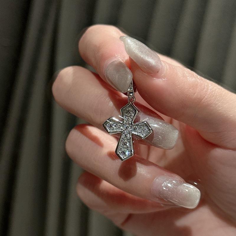 Pendentif en argent pur S925 de style vintage, design de niche, luxe léger avec incrustation de zircon, forme géométrique simple et tendance